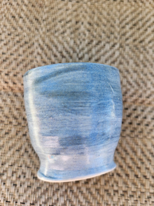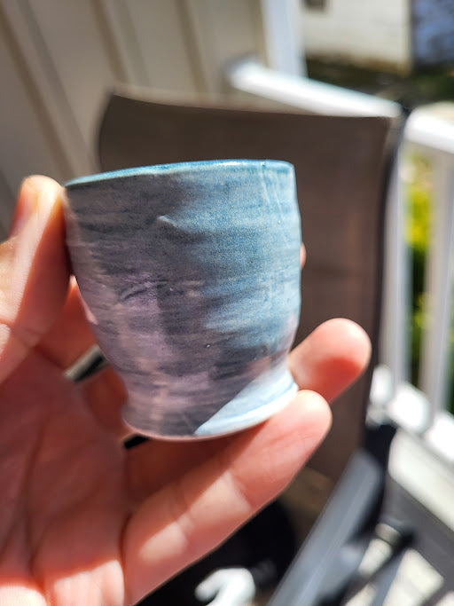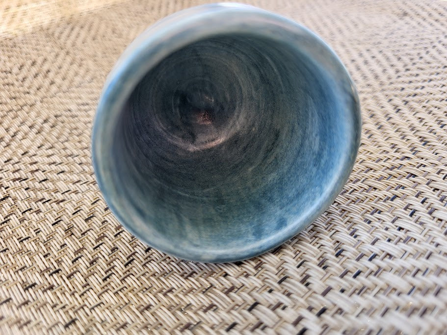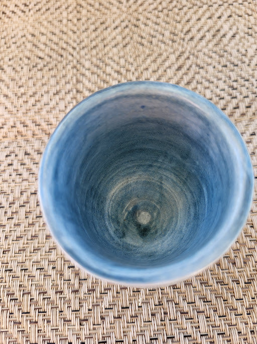 Small yet full of character, Wabi Sip embodies the quiet beauty of imperfection. This petite blue cup was shaped by hand and dried before its final trim — leaving the base raw and organic, a reflection of the moment it paused in creation. That pause became part of its story, reminding me that not everything unfinished is incomplete — some things are meant to stay just as they are.